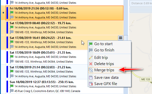 - Right click (While keeping the Shift key pressed) and select "Merge Trips"