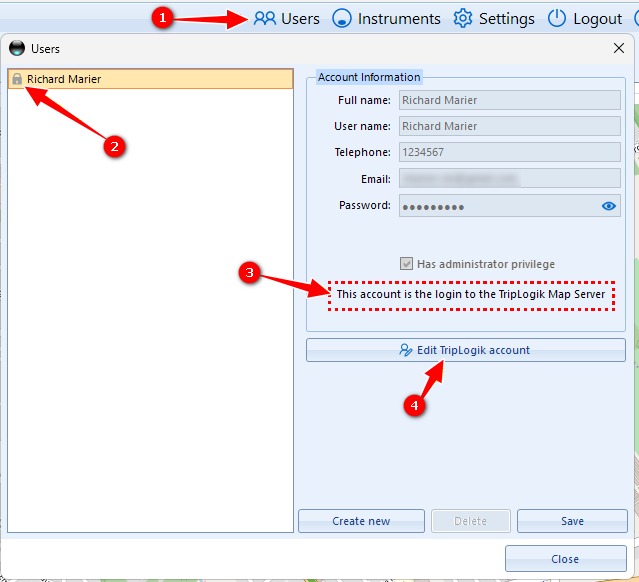 The main administrator account in TripLogik Manager is directly linked to your TripLogik Server (TripLogik Map) account.