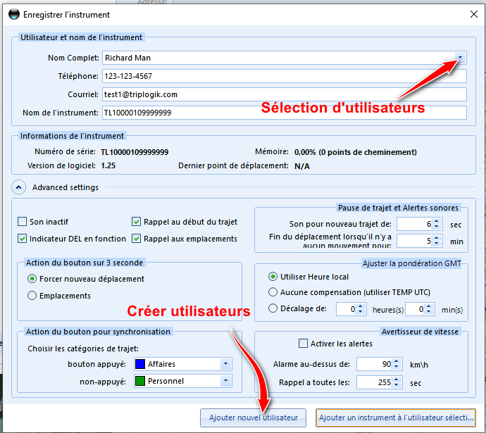 L’attribution d’un instrument à un utilisateur permet d’identifier précisément qui a effectué les trajets.
