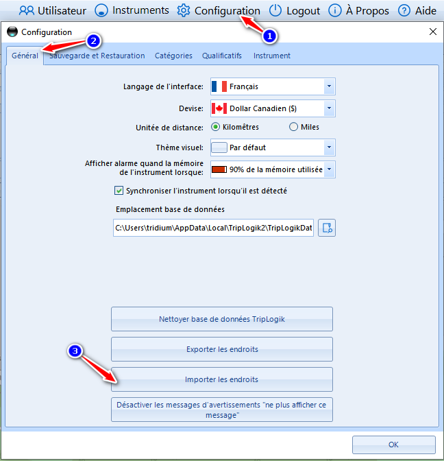 L’importation peut être utilisée pour partager une liste d'endroit parmi un groupe parmis des utilisateurs qui ont chacun leur propre Logiciel Manager. ou tous simplement de conserver une copie de sauvegarde des endroits que vous avez édité.