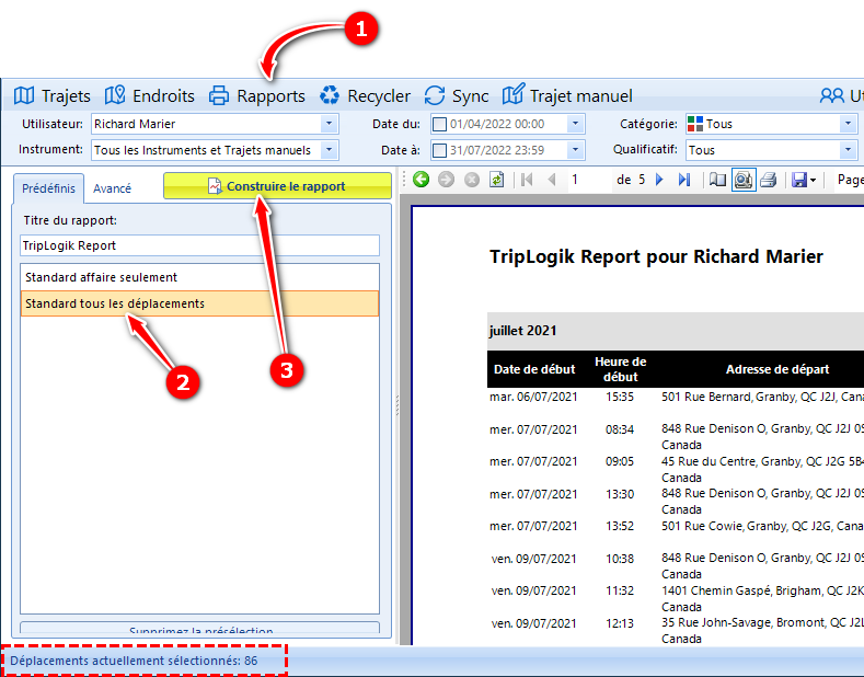 Le nombre total de trajets sélectionnés affichera en bas à droite