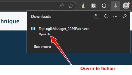 Cliquez sur le lien pour télécharger le fichier de mise à jour du Manager nommé TripLogikManager_2026Patch.exe